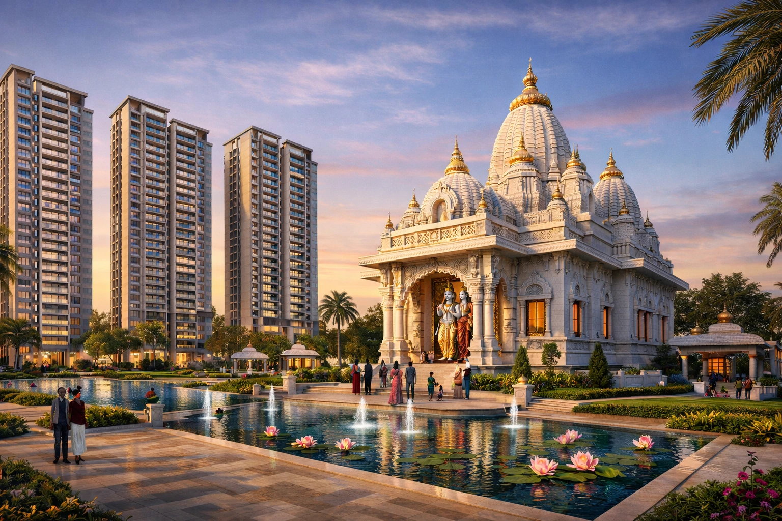 A truly rare highlight of Mana Verdant Terraces is the exclusive Krishna Temple within the gated community, offering residents a peaceful spiritual retreat right at home. Enhancing the lifestyle further is a 36,000 sq. ft. grand clubhouse with 70+ curated amenities, lush vertical landscaping, green boulevards, and multiple outdoor experience zones—crafted exclusively for a limited community of families.